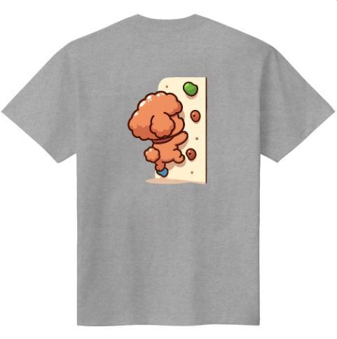 背中には、一生懸命ボルダリングに挑戦するトイプードルの後ろ姿がどーんとプリント!