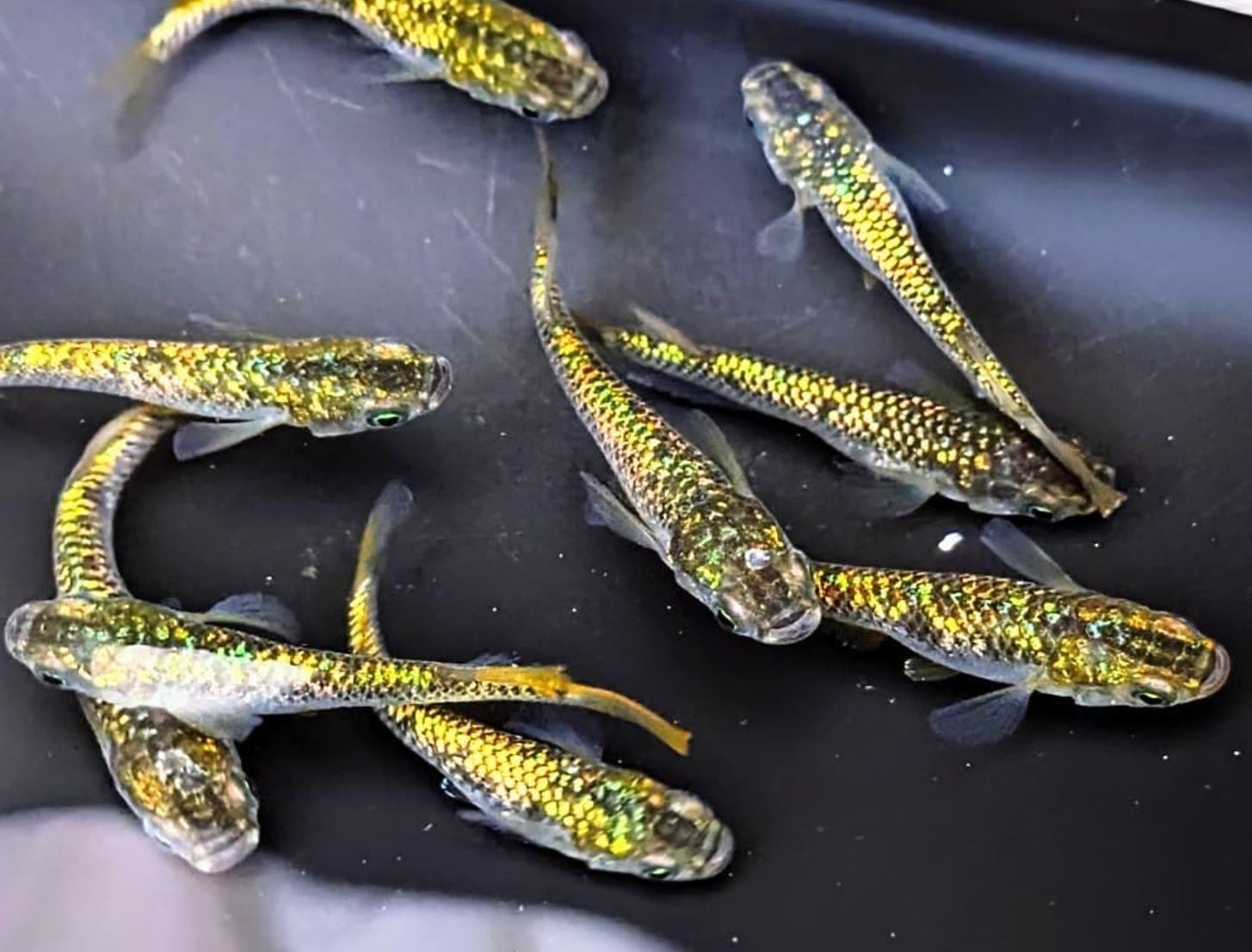 金平糖ゴールド18K 親個体写真、約5mmサイズになります。 野外飼育です。当社は養殖場を運営しております。 【 金平糖ゴールド18K 若魚 2匹 1ペア 】 約5mmサイズをお送りいたします。 グレードは親個体でご判断ください。