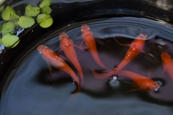 親個体写真の稚魚10匹S SSサイズになります。 野外飼育です。当社は養殖場を運営しております。 【紅帝松井ヒレ長 S SSサイズ稚魚10匹 】 S SSサイズ稚魚10匹をお送りいたします。