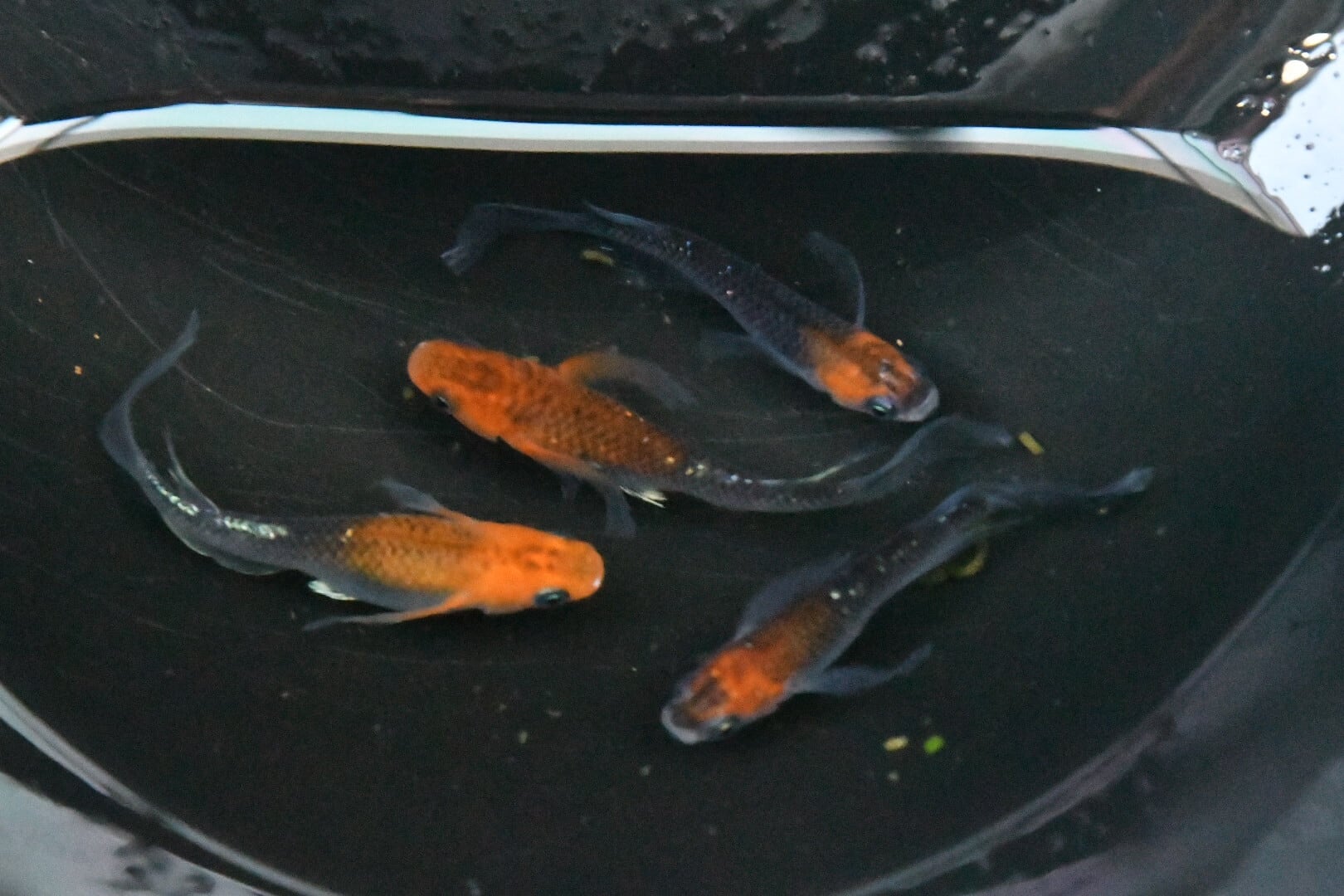 メダカが届いたら、ビニール袋に輪ゴムの封をしたままの状態で、容器または水槽の上に浮かべてください。