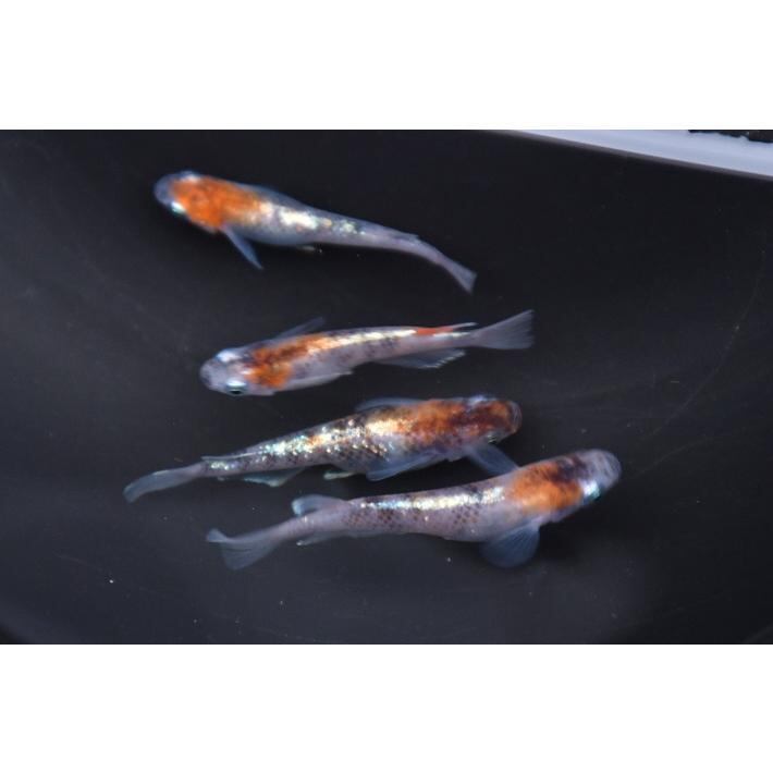 三色ラメ体外光 親個体写真の稚魚10匹 になります。 野外飼育です。当社は養殖場を運営しております。 【三色ラメ体外光 稚魚10匹 】 S SSサイズをお送りいたします。
