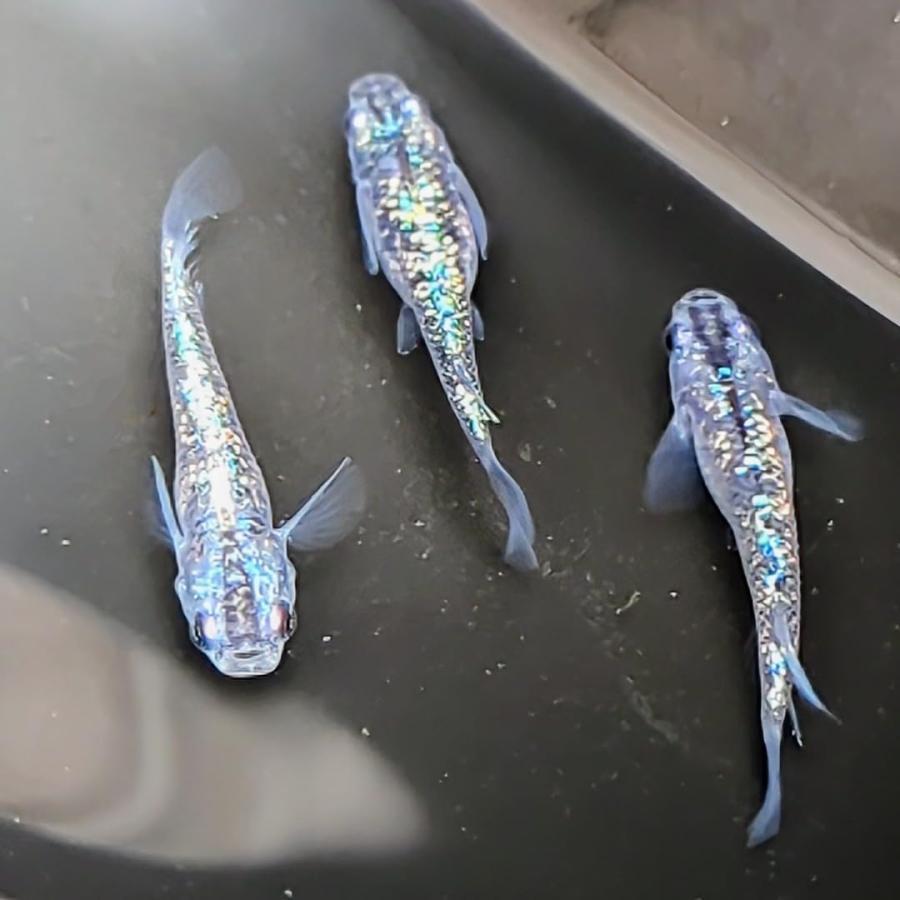 夜桜ブルー 写真、動画親個体の稚魚S SSサイズになります。 野外飼育です。当社は養殖場を運営しております。 【夜桜ブルー 稚魚7匹保証3匹追加 】 画像サイズをお送りいたします。