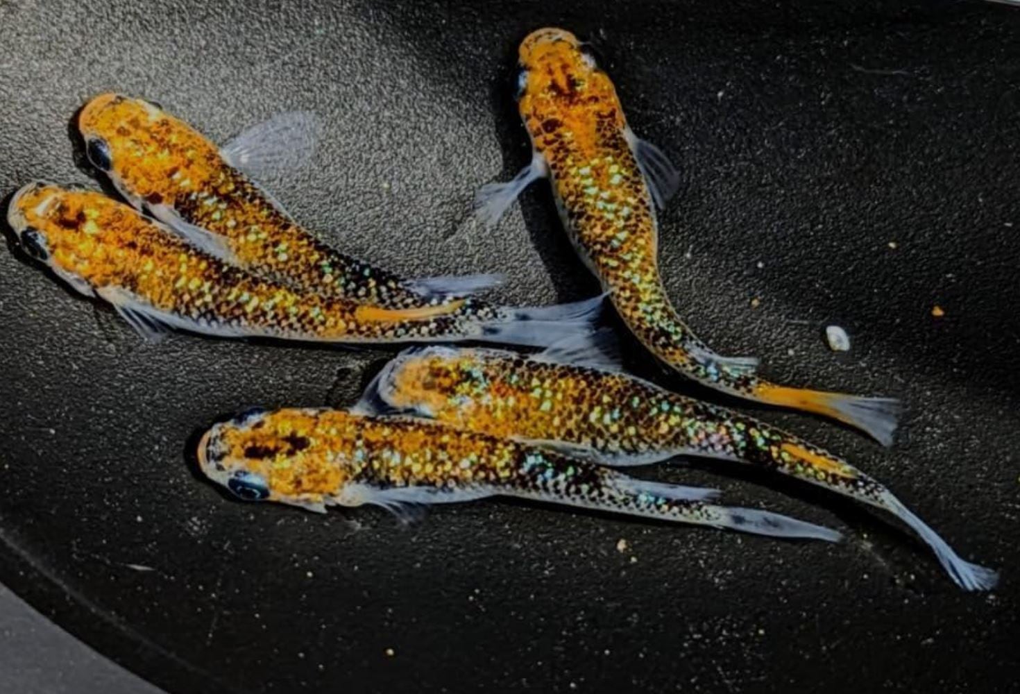 夜桜ゴールド 写真、動画親個体の若魚5匹になります。 野外飼育です。当社は養殖場を温営しております。 【夜桜ゴールド 若魚5匹 】 画像サイズをお送りいたします。